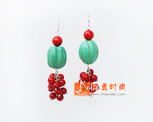 推荐理由:顽皮的绿松石南瓜造型搭配簇状鲜艳的红色珊瑚珠,是波西米亚风格的代表哦