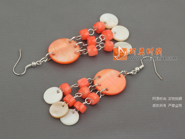 珊瑚贝壳耳环 - 编号:E12
