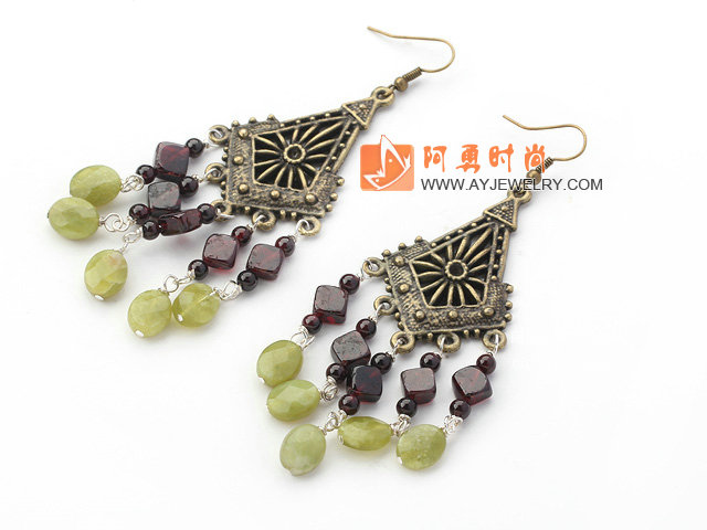 石榴石橄榄玉耳环 流苏款 - 编号:E1339