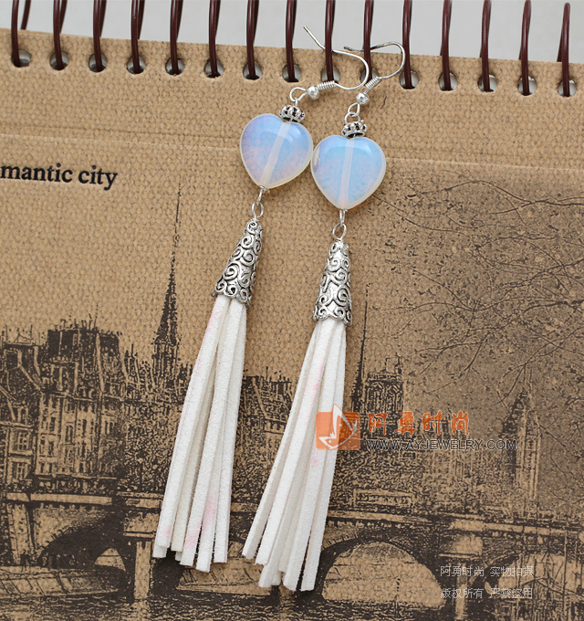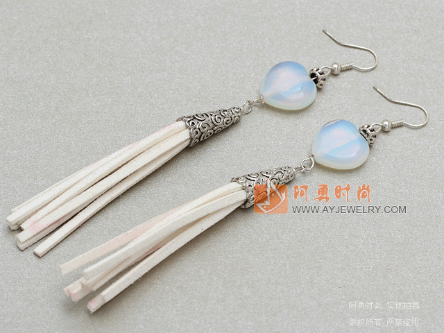 心形蛋白石耳环 流苏款 - 编号:E2166