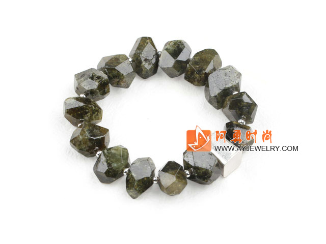 天然冲角绿色石榴石纯银手链 - 编号:F148