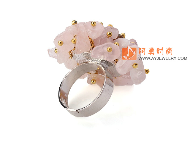 粉水晶 玛瑙手工戒指 圈口可调节 - 编号:H168