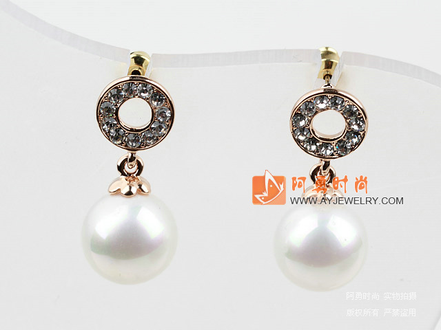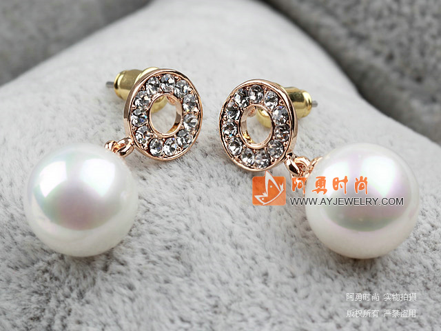 仿珍珠镀金镶钻防过敏耳环 - 编号:J28
