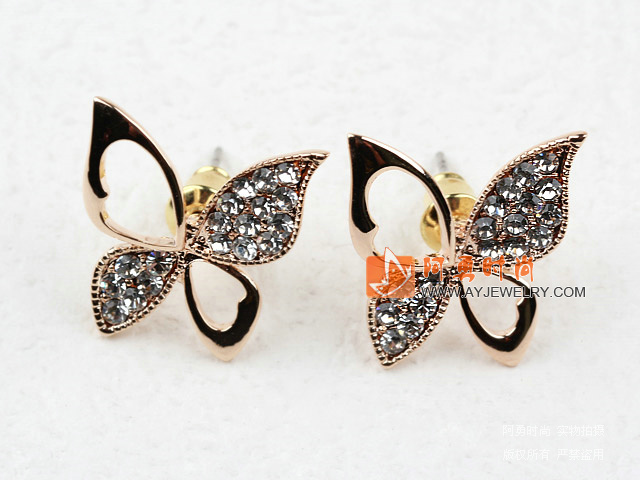 蝴蝶心镀金镶钻防过敏耳环 - 编号:J59
