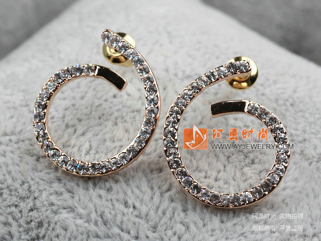 螺旋镀金镶钻防过敏耳环 - 编号:J94