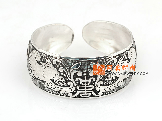 藏银刻花宽面手镯 可调节 - 编号:L1079