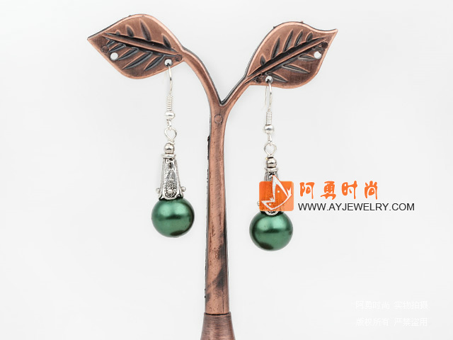 橄榄绿贝壳珠耳环 - 编号:L1165