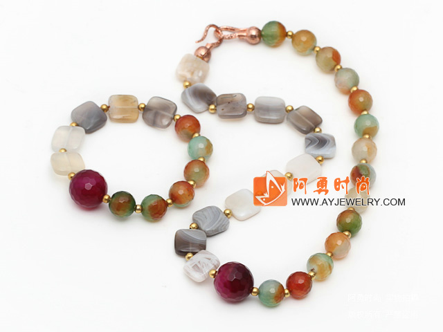 孔雀石 玛瑙 灰玛瑙 手链 项链 套链 - 编号:L1312