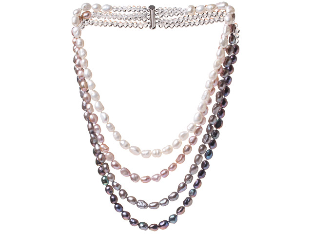 渐变色巴洛克珍珠 水晶项链 四层款 - 编号:L2207
