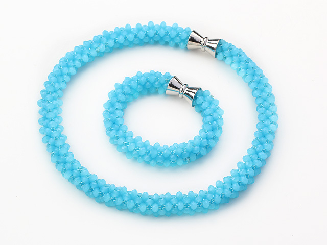 蓝色玉料编织项链手链套装 - 编号:L2500