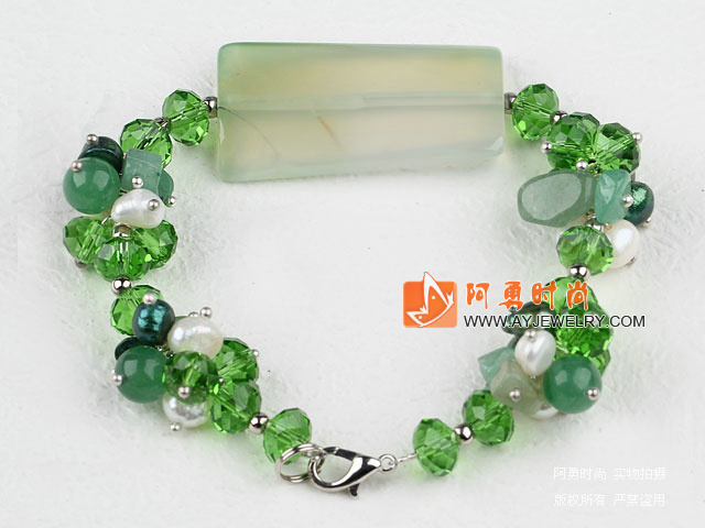珍珠水晶绿玛瑙手链 - 编号:L698