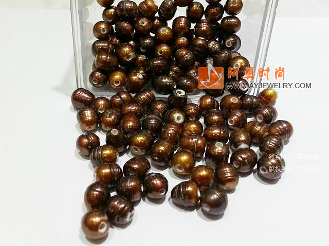 10-11mm 棕色螺纹的米形珍珠 大孔珠 2元/颗 100颗起卖 - 编号:Q94