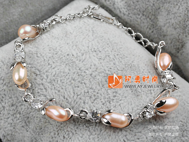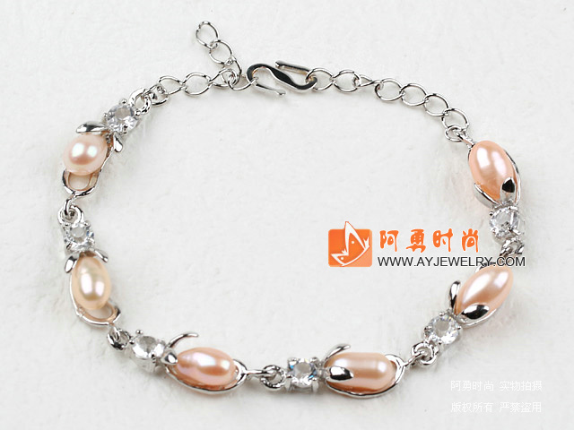 米形珍珠水钻合金手链 - 编号:RY1180
