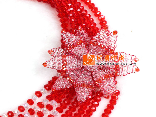 红色 白色项链 手链 耳环 套链 配水晶花 可拆卸 - 编号:T1090