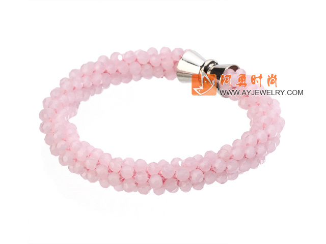 粉色玉料套链 项链手链套装 编织款 - 编号:T2