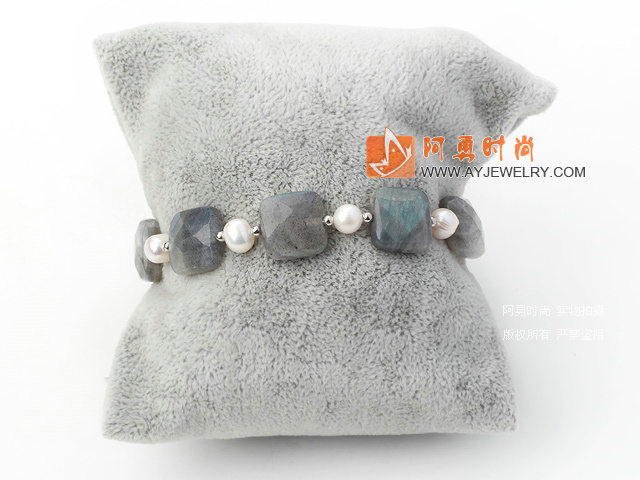 天然白色珍珠 韩玉弹力绳手链 多层弹力绳款