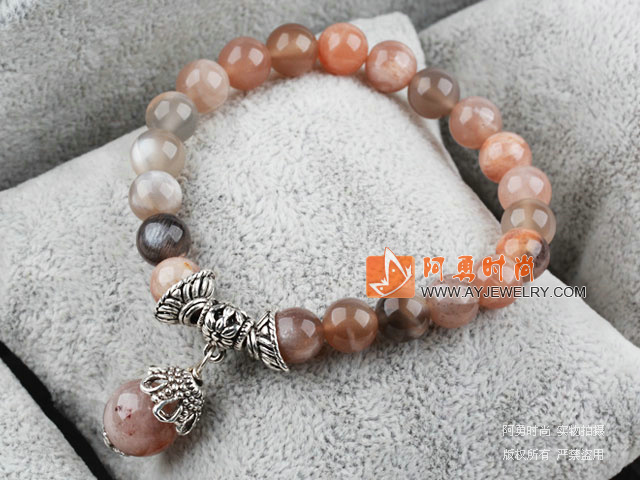 8mm天然太阳石手链耳环套装 - 编号:T434
