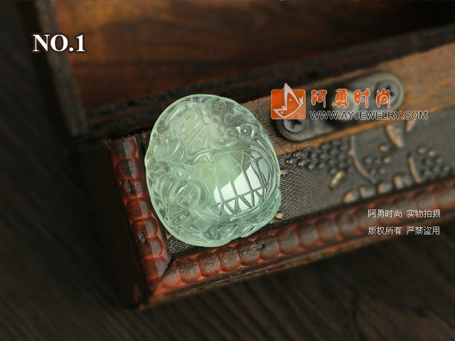 A级葡萄石吊坠 吉祥雕 神兽 配纯银链 两款可选 一物一图 - 编号:V357