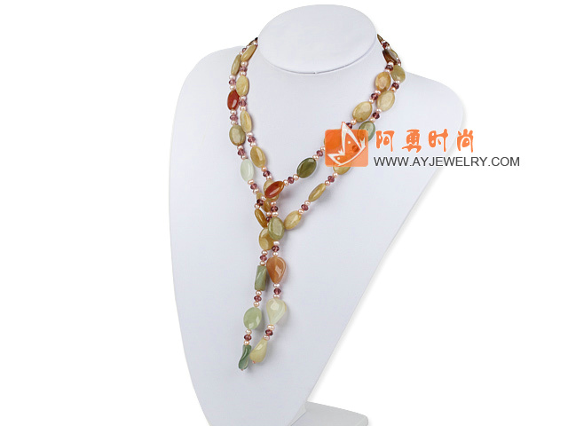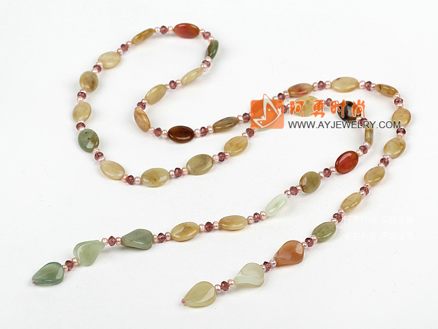珍珠三彩玉项链毛衣链 - 编号:X1495