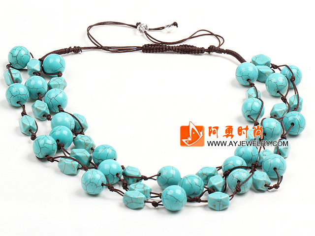 蓝色糖果玉手环 配藏银大象 四层缠绕带坠弹力线款