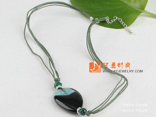 磨砂白水晶 弥勒佛吊坠 配黑玛瑙项链