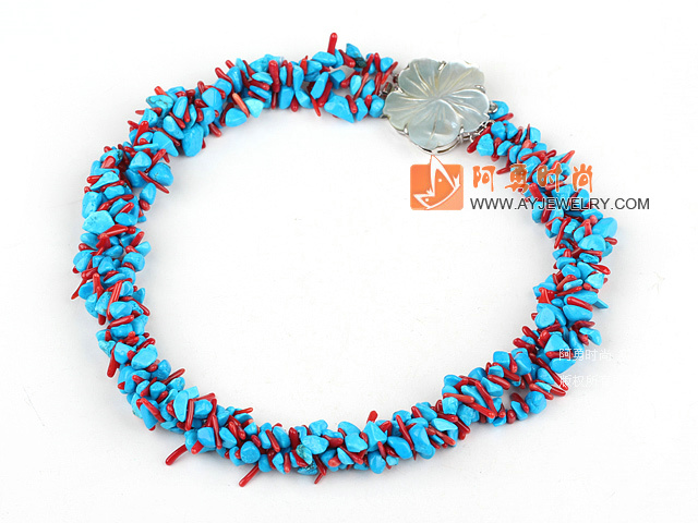 松石珊瑚项链(贝壳花扣)多股扭扭款 - 编号:X256