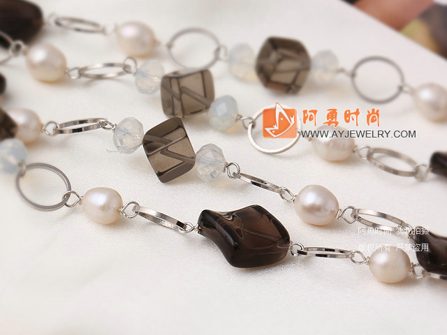 天然茶晶珍珠项链 毛衣链 110cm合金链长款 - 编号:X2754