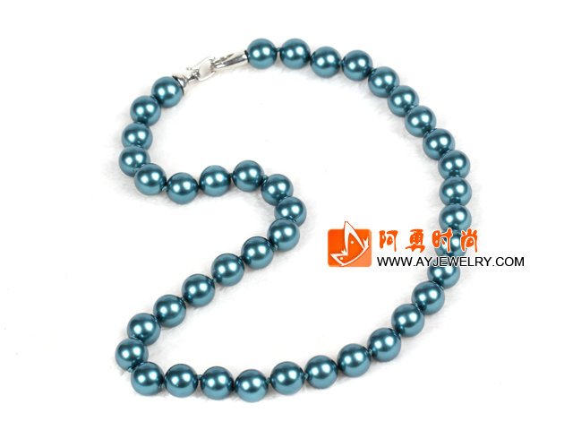 10mm孔雀绿海贝珠项链 - 编号:X3037