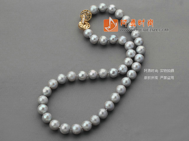 银灰珍珠项链 镀金扣 简约单层珠链款 - 编号:X3301
