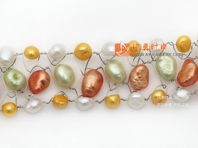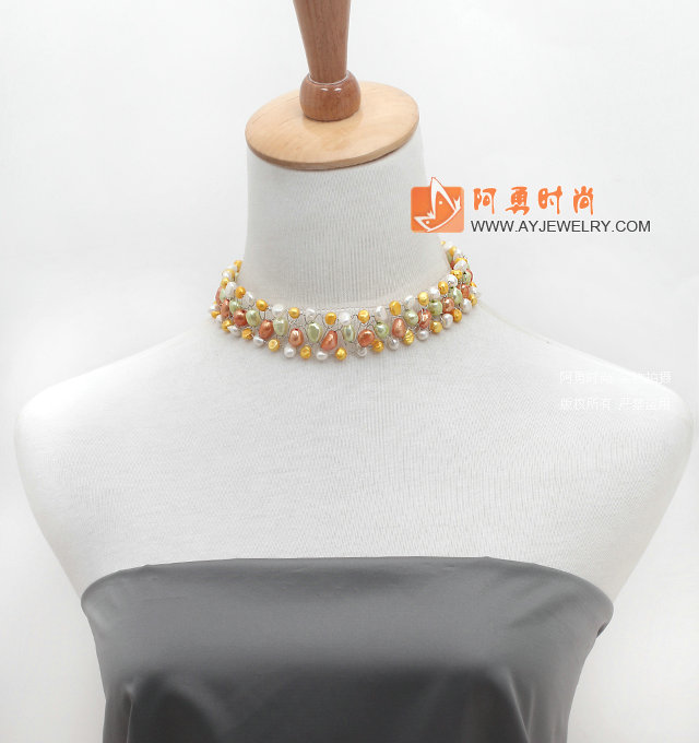 多彩珍珠编织项链 - 编号:X3422