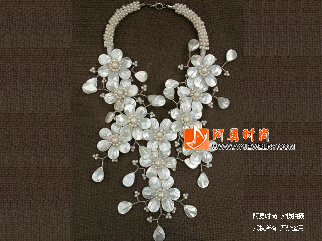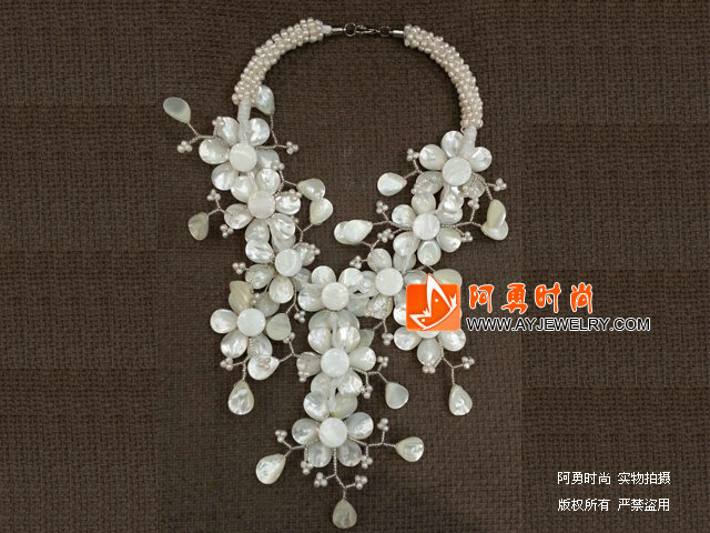 白珍珠贝壳花朵夸张项链 - 编号:X3455
