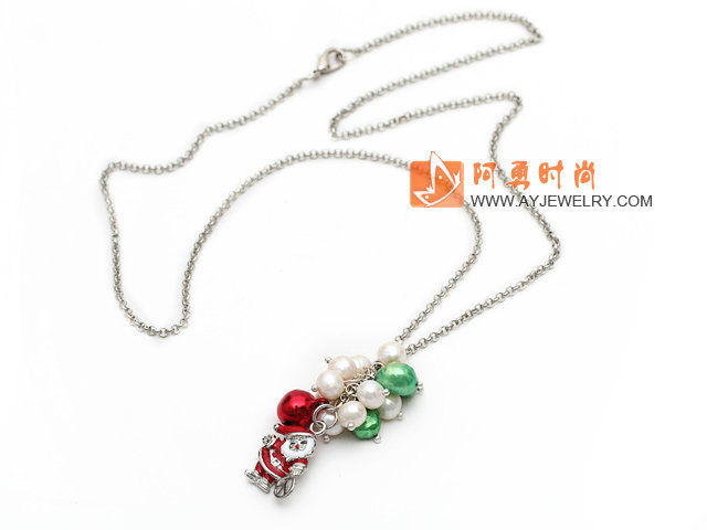 铃铛 珍珠项链 圣诞老人吊坠 配合金链 - 编号:X3617