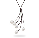 天然白色珍珠手链 配黑色皮绳 多层皮绳款
