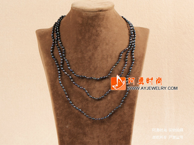 3-4mm黑珍珠长款毛衣链项链 - 编号:X4404