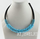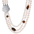 9-10mm 天然紫色米形珍珠项链 三排贝壳花扣款