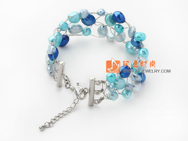 蓝色系珍珠手工编织手链 - 编号:Y1797