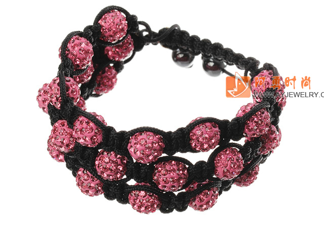 粉色软陶水钻球手链 特彩 多层编织款 - 编号:Y2704