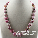 粉红彩玉项链配合金扣镂空圆珠 简约单层叠珠款