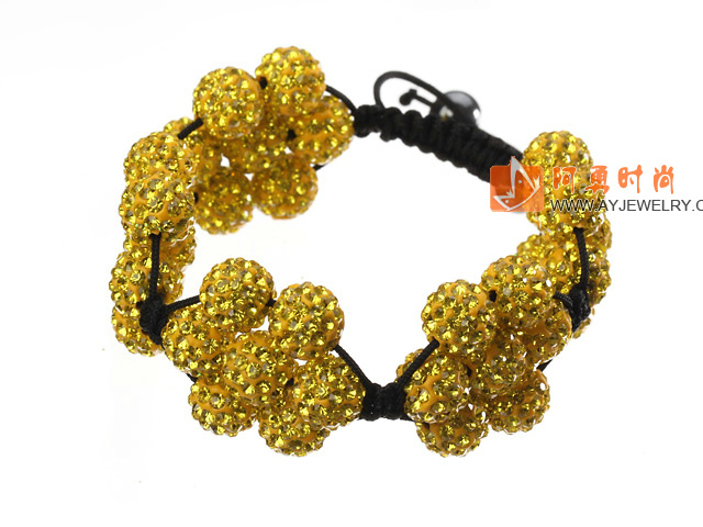 黄色软陶水钻球手链 特彩 花朵编织款 - 编号:Y2711
