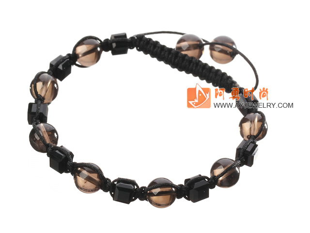 茶水晶 方形人造水晶手链 编织款 - 编号:Y2755