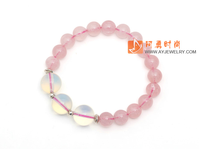 粉水晶 蛋白晶银珠手链 - 编号:Y2796