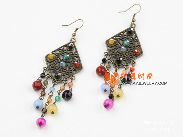 - 石榴石玛瑙耳环 藏饰耳坠编织款