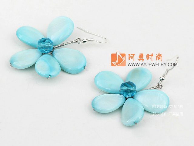 - 水晶浅灰色贝壳花朵耳环 编花款