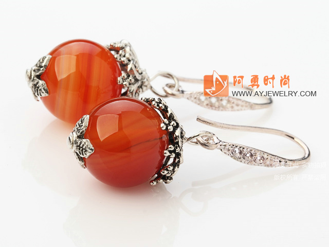 - 绿松石珊瑚黑玛瑙耳环 简约耳钩款