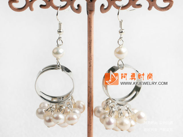 - 白色有核珍珠耳环