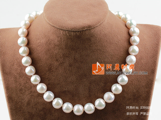 - 10-11mm亮光少纹白粉紫色珍珠项链