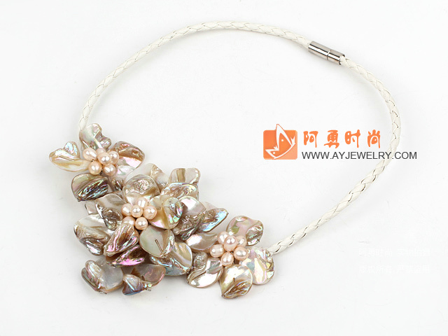 - 白色贝壳花吊坠项链 皮绳款