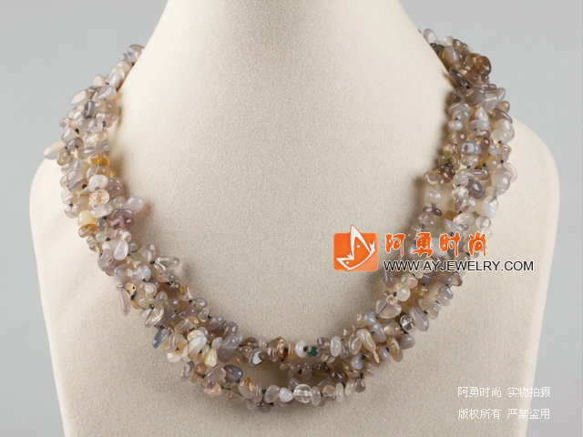 - 人造水晶 玛瑙 白瓷石项链 四层款