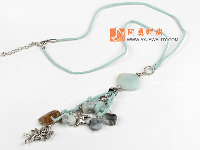 - 原色玛瑙水晶项链 多股皮绳款