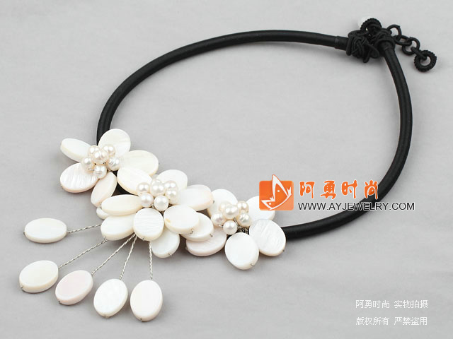 - 珍珠 白蝶贝壳花项链 配合金扣